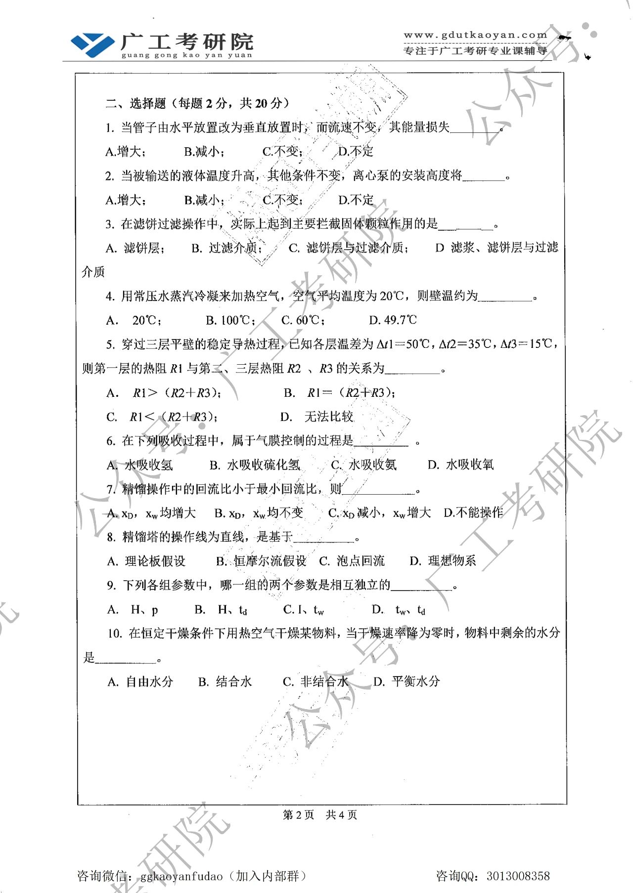 今天我们看看【2020年广东工业大学814化工原理考研真题】。欲想获取更多广工考研真题,可添加课程顾问微信,备注【真题】即可获取。